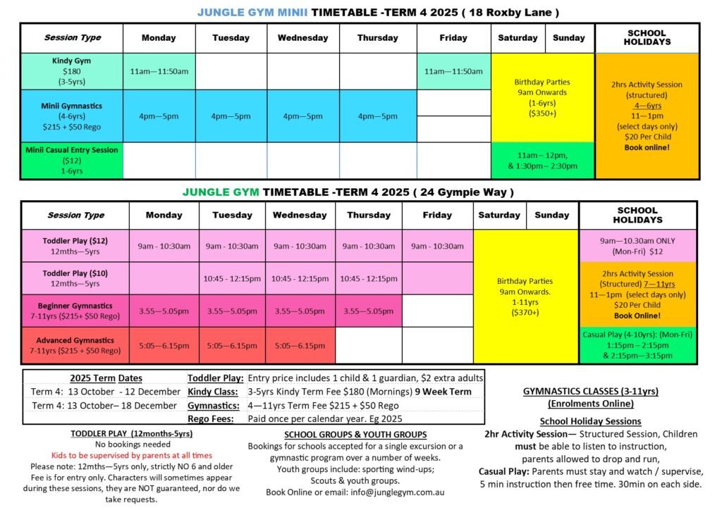 Birthday Bookings for 2025 now have the option to select your preferred party room & update party numbers online. Gymnastics Classes are also now able to be booked through the new booking system.