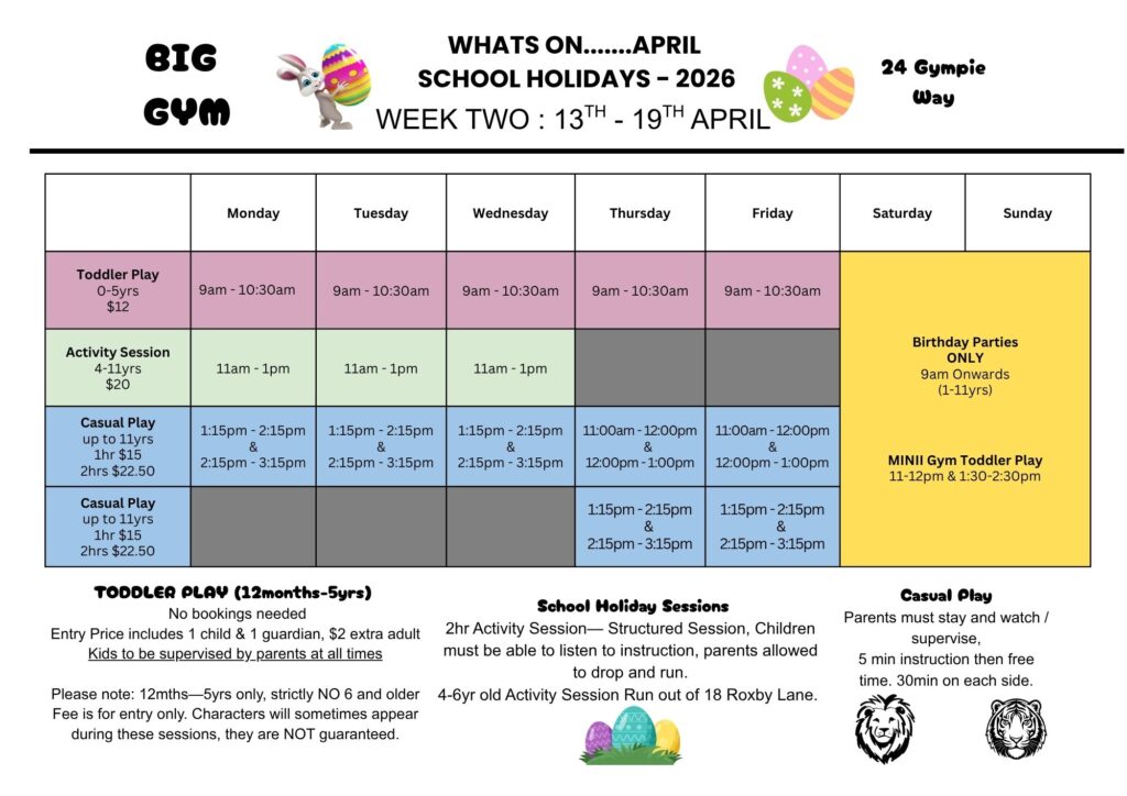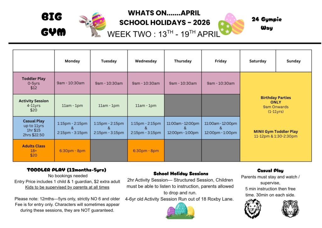 Casual Play Sessions and School Holiday classes can be booked without creating an account. – See Casual Play & School Holiday pages to book your session.